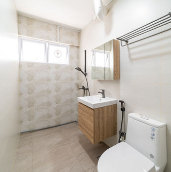 This modern home in Simei is designed with comfort, texture, and refined detailing in mind. The space features a statement rug that anchors the living area, adding warmth and a cozy atmosphere to the open-concept layout. A custom walk-in wardrobe elevates the master bedroom with its luxurious finishes, practical organization, and sleek lighting. To complete the look, premium wallpaper is applied on selected feature walls, creating depth, character, and a gentle modern elegance throughout the home. Together, these elements enhance both the aesthetics and functionality of the space, giving it a polished and contemporary feel.